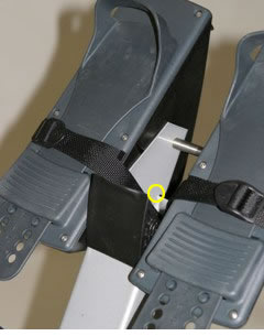 To address this issue, we have modified the construction of this area to include a thin steel plate on either side between the box arm and the foot stretcher assembly. This new construction has been extensively tested for strength and susceptibility to metal fatigue. We have also developed a reinforcing kit that is available free of charge to all owners of Model D and E indoor rowers made during this time period. The reinforcement consists of two metal plates that are easily user-installed between the foot stretchers and the box frame. All the necessary tools and materials needed to complete the installation are provided in the kit. These plates are identical to the plates that are currently being used on new machines at our shop.